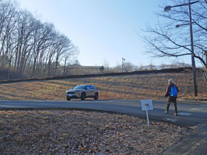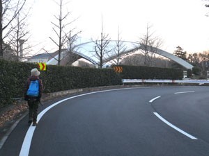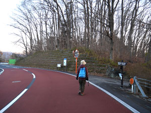 7時58分、「屋外ステージ」背後を通過し、園地北側の道路へ出て南下継続。 |