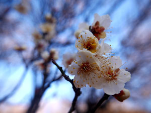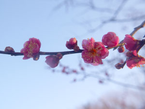 紅白の梅が咲いていたが・・何れも未だ二分咲き程度。 |