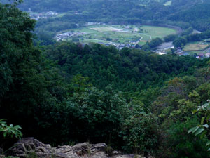 南山麓には「巾着田」。小休止後、山頂を目指す。 |