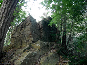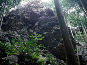 標高250m辺りまで下ると大岩。表示は無いが「富士見岩」らしい。更に南へ下山続行。 |
