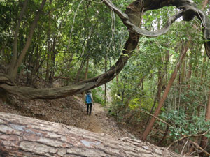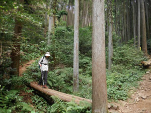 一般登山者が少ないコースなのか蜘蛛の巣が顔にかかる。 |