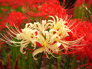 ほぼ、赤い曼殊沙華の中に僅かに黄花。 |
