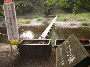 標高180m辺りの沢筋の木橋を渡ると眼前に |