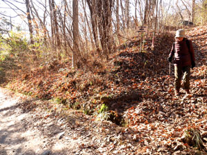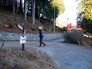 「宝登山神社」を参拝して往路を戻り、「←宝登山2.8km」標識に従い、簡易舗装路を西へ上っていく。 |