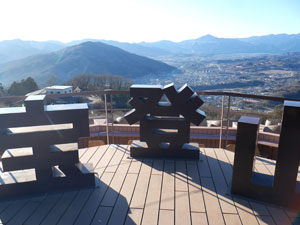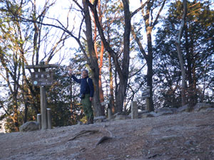 山頂南に新設された「展望台」があり、これに上ると快晴の空の下、好展望。零下の風が冷たい。 |