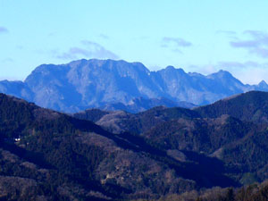 西に岩稜の山頂を連ねる「両神山」、 |