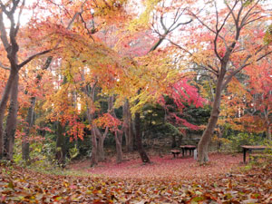 その代わり、林床が色づき落ち葉で彩られている。 |