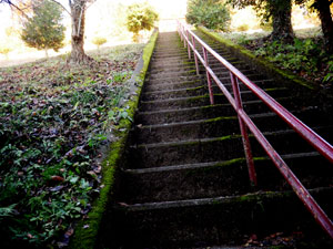 段差の大きい急階段を登って・・ |