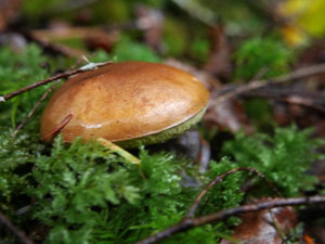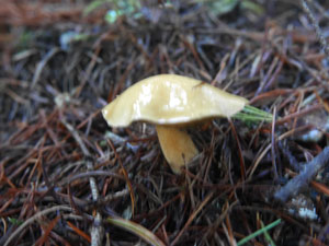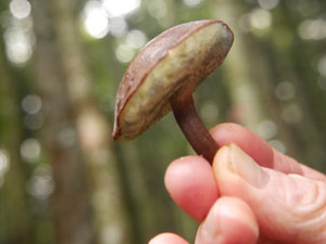 このキノコは?・・「ヌメリイグチ」又は「ニセイロガワリ」との答えで採取。 |