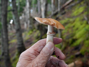 進路を山頂方向に修正して上り始めると・・「ドクツルタケ」。近くに |