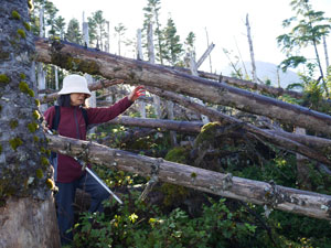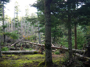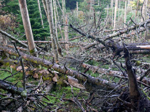出発地から50mほど高度を上げると・・その先は倒木帯。 |