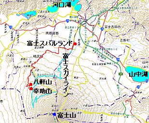 3時45分、出発。 中央高速を利用して 5時8分、「河口湖IC」を降りると残距離は20km。 5時58分、出発。 |