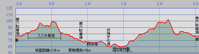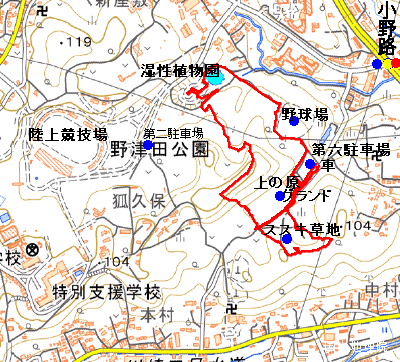 5時50分、出発。 都道19で小野路町へ進み、「小野路交差点」先480mを左折して第一駐車場に入車するつもりが、120m先の「←野津田公園・東入口」標識に従い左折して、既に10台以上が駐車している「第六駐車場」に入ってしまったので急遽、この地を今日の出発地に変更。 6時、出発地点が変わったので、周回コースに迷ったが、先ずは「ナンバンギセル」に対面しようと、「ススキ草地」を目指して南へスタート。 |