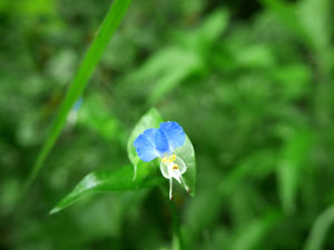 草原に花は少なく、見られたのは「ツユクサ」と |