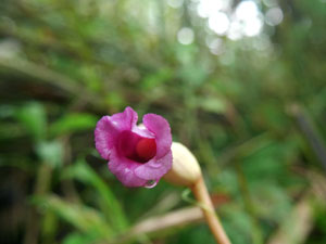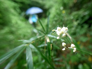 10株ほどの「ナンバンギセル」発見!!。雨粒をつけた小花をカメラに収め・・ |