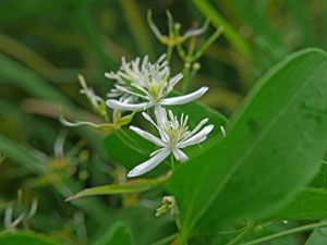 コース脇に白花。Googleレンズに尋ねると・・即、「センニンソウ」と回答。 |