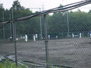 野球場では早くも野球の練習中。駐車場の車は彼らの車だった。 |