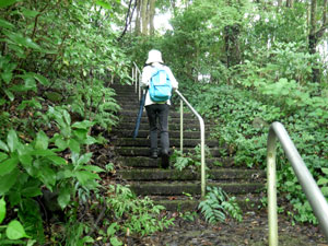 7時5分、「湿性植物園」を後にし、階段道で南の森へ上る。 |