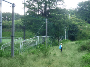 「ヤブミョウガ」程度。「原っぱ」先に進むと鉄柵。「ススキ草地」へは南へ進みすぎと判断して右へ折り返し・・ |