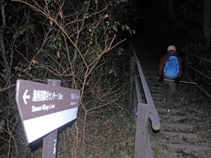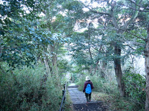 先ほど登った長い擬木階段を唯々、下る。 |