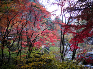 1.5km程、南進すると渓谷沿いのモミジが赤や |