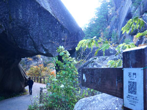 巨大な花崗岩下の「石門」を通過。 |