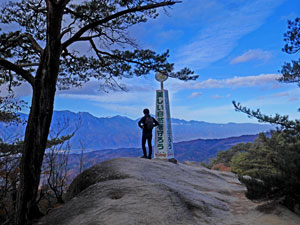 東への岩盤尾根で「羅漢寺山」最高点を目指す。 |