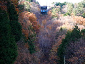 下山途中、南に「富士山」が姿を現した。日曜日は始発時刻を早めるのか、ケーブル登山者と交差し始めた。 9時6分、「パノラマ台駅」に戻り「片道乗車券(800円/人)」を購入。 |