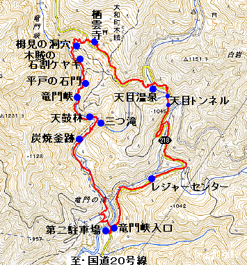 「竜門峡入口」に戻って右下の駐車場へ下る。 |