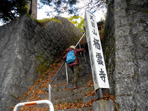 6時54分、県道脇の「栖雲寺」標識に従い、石階段を上り、 |