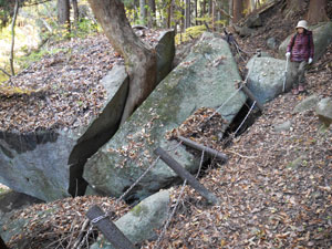 標高940m辺りで「木賊の石割ケヤキ」横を通過。 |