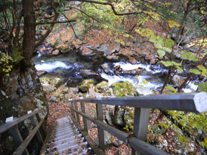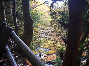 暫くはコースを辿るのが精いっぱいで、下に流れる渓谷に目を凝らせない。 |