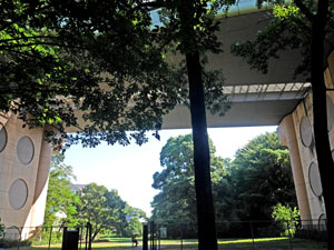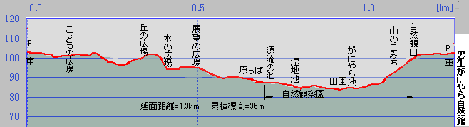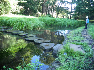 一段下って南下に「水の広場」を見下ろし、左回りで広場上を周回。 |