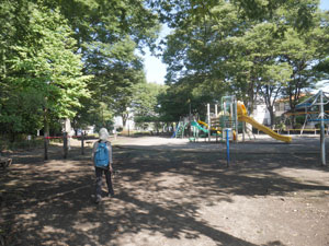5分ほどで「子供広場」横に出て、左の林を目指す。 |