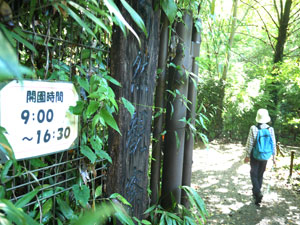 8時41分、「自然観察園」入口扉前に到着。開場時刻9:00〜と記されていたが、ゲートは開いていた。 |