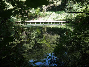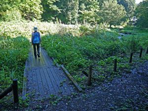 「湿地池」エリアへ進んで遊歩橋で沼地を横切る。 |