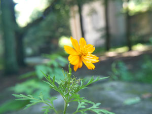 コース脇に季節らしい「キバナコスモス」が1輪。 |