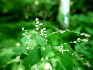 このコースも花は少なく、見られたのは「ミズタマソウ」だけ。林を上り上げて |